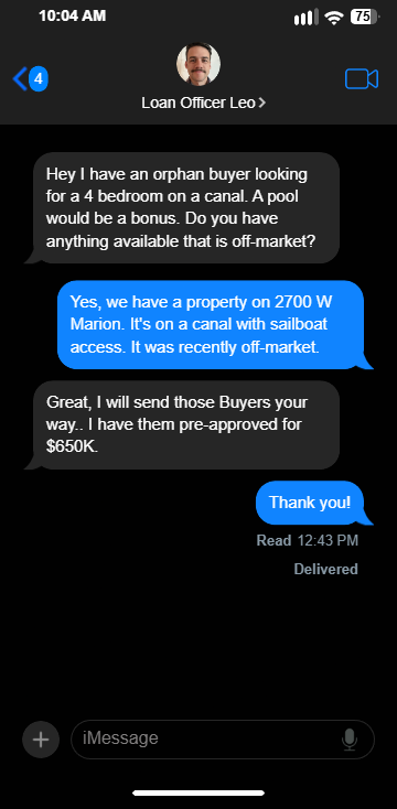 Through our Buyer Network Providers, we access a steady stream of buyer assignments from mortgage companies with large client pipelines, relocation firms assisting job transferees, hedge funds acquiring luxury rentals, property managers guiding tenants into homeownership, and out-of-state agents helping clients find second homes or waterfront properties. This approach creates smarter marketing, faster results, and stronger value for your home.
